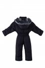 Комбинезон для мальчика - детский утепленный комбинезон со съемным капюшоном из искусственного меха, с воротнком - стойка и с центральной застежкой на молнии, с двумя карманами и эластичным поясом на декоративной пряжке. Рукава с отворотом и трикотажными манжетами. Комбинезон расчитан на возрастную группу 1-2 года.